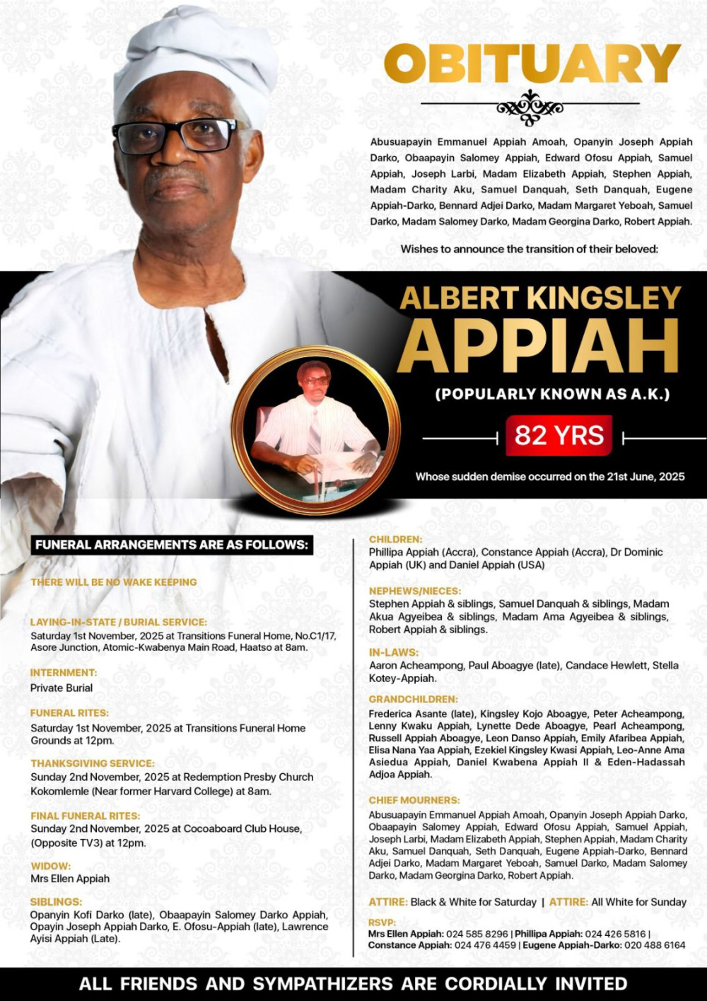 Funeral @ Transitions Place, Haatso Sat. 1 - 11 - 2025 10: 30am Interment Private