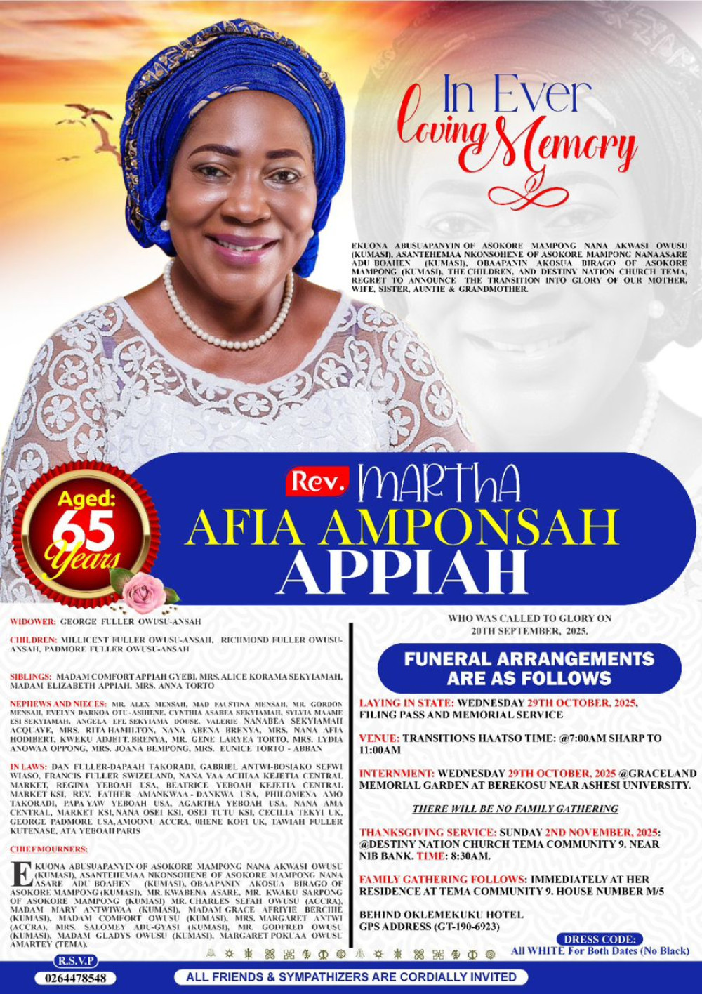 Private Burial Service at Transitions Place. Asore Junction, Haatso Accra