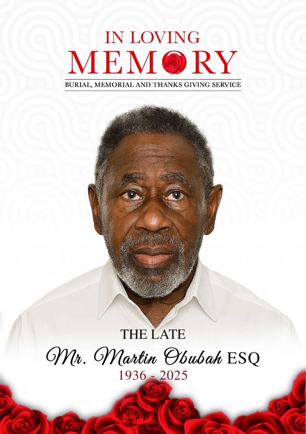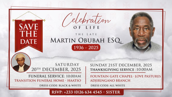 Private Burial Service at Transitions Place. Asore Junction, Haatso Accra Date: 20th December, 2025 Time: 10:00 am Interment: Private