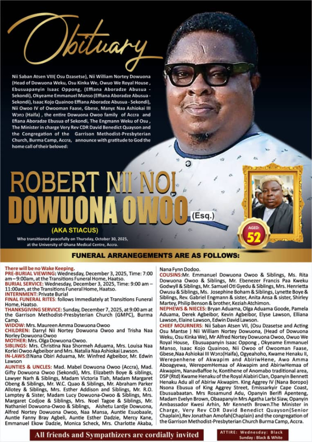 Private Burial Service at Transitions Place. Asore Junction, Haatso Accra